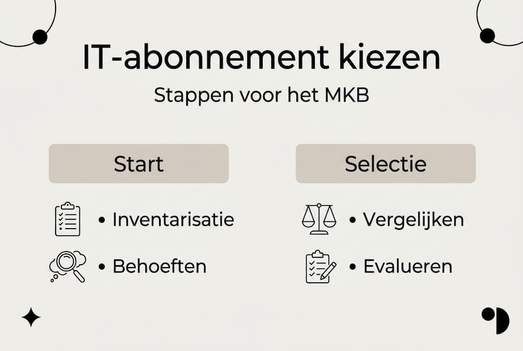 Het overkomt elke MKB-eigenaar wel eens: midden op een drukke werkdag valt een systeem uit, niemand weet wie er gebeld moet worden, en kostbare uren gaan verloren. Zulke situaties zijn niet alleen frustrerend, ze kosten ook geld. Een goed gekozen IT-abonnement voorkomt precies dit soort verrassingen. Toch kiezen veel ondernemers een abonnement op gevoel of op basis van de laagste prijs, zonder goed te kijken wat er echt bij hoort. In dit artikel doorlopen we stap voor stap hoe u als MKB-eigenaar een IT-abonnement kiest dat écht aansluit bij uw bedrijf, uw mensen en uw ambities.